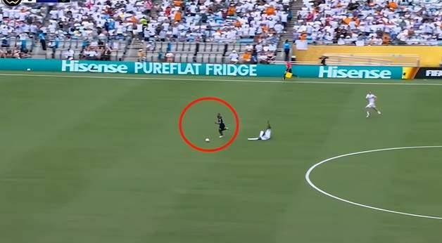 在被迫后退的局面下,贝林厄姆的表现可谓大心脏。根据数据专家chip的统计,本届世俱杯中,竟有两个少一人的球队仍能攻破对方球门,第一个是本菲卡的奥塔门迪,第二个就是贝林厄姆所在的皇马。