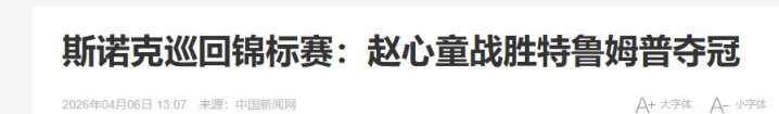 赛后面对镜头,特鲁姆普也表示赵心童今天打得太出色了,配得上这个冠军。