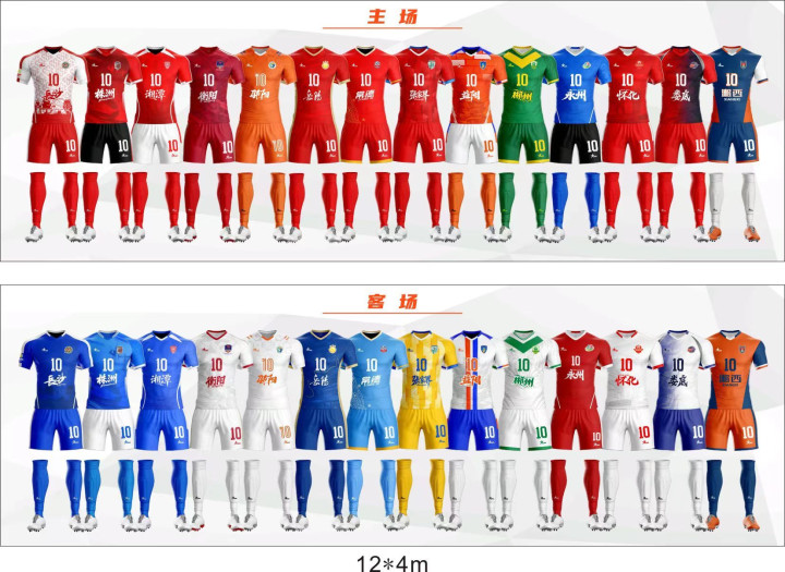 会上展示了湘超联赛Logo、口号、吉祥物、文创产品和14个市州比赛队服。