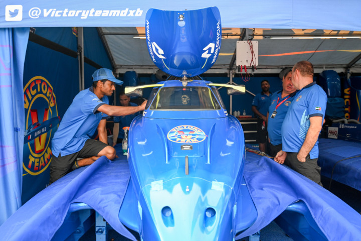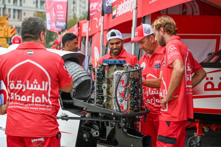 获得世界F1H2O摩托艇锦标赛年度总冠军三连冠的中国天荣F1H2O摩托艇队。澎湃新闻记者朱伟辉图