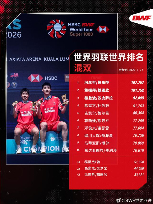[世界羽联2026年第5周世界排名]