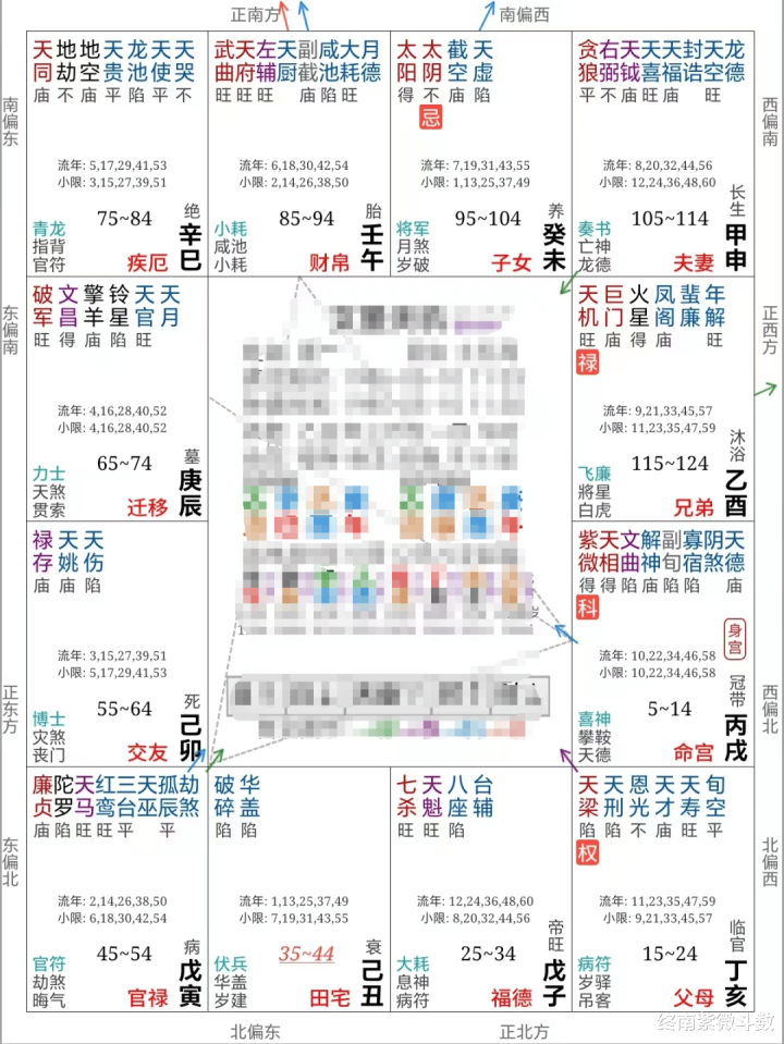 子女宫这个生年忌还有个大麻烦,其对宫是田宅。田宅是库位,库位就是自己的不动产,是财富之根基,也是先天命盘的气数位,不可以被冲。如果被冲,入命宫一样,往往意味着破坏之象。